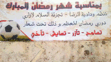 بمناسبة شهر رمضان المبارك،دأبت ودادية الرضى بحي السلام بلازاري وكعادتها على تنظيم دوري في كرة القدم لفائدة شباب الحي وذلك تحت شعار:تسامح،تآزر،تعايش،تآخي،بساحة مدرسة عثمان بن عفان بنفس الحي.