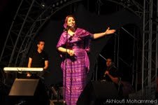 La grande Diva, en plus de la chanson athentique sahraouie, a visité différents genres musicaux, du populaire, le Rai … L’agréable surprise a été la chanson qu’elle a composée, chantée et dédiée spécialement à la ville d’Oujda et à son public, qui a l’a scandée haut et fort, en parfaite symbiose avec elle … Un cadeau plein d’affection, de chaleur et de reconnaissace à un public qui le lui rend bien.