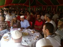 بعد الصلاة مباشرة دعي الجميع إلى تناول وجبة الغداء تحت خيام متراصة تسع كل واحدة أزيد من خمسين شخصا.كان في خدمة الضيوف ممون معروف بوجدة وهو الذي سهر شخصيا على إعداد الطعام ثم عملية تجهيز الموائد باستخدام أزيد من 20 نادلا ونادلة .