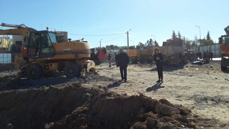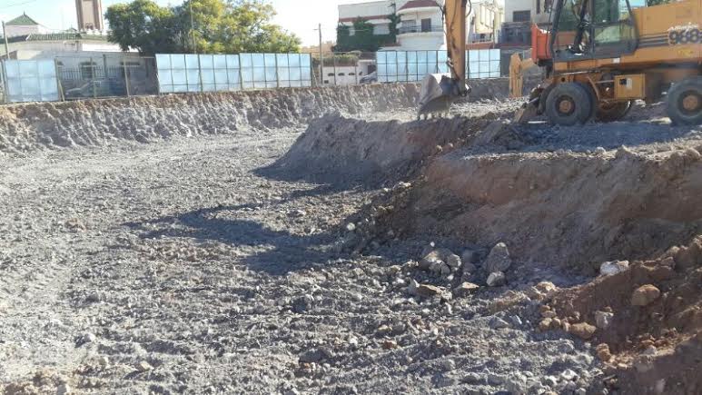 Commencement du terrassement côté rue Bassira : Terrain rocheux à partir de 50 cm de profondeur