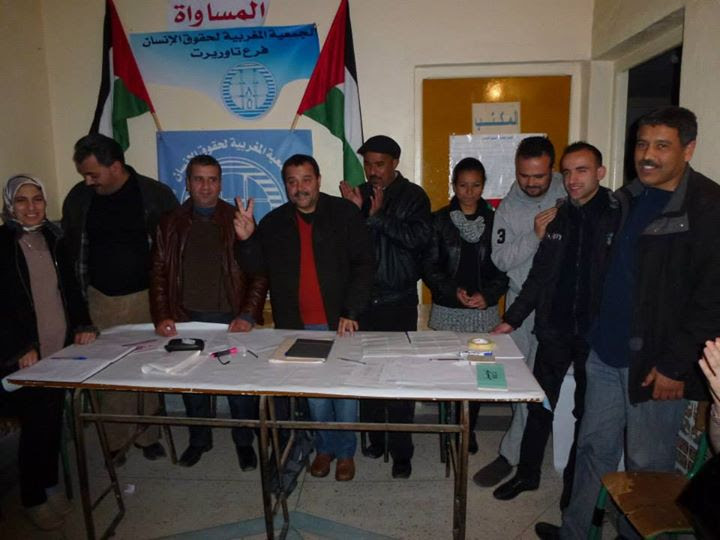 عقد الفرع المحلي للجمعية المغربية لحقوق الانسان بتاوريرت جمعه العام لتجديد أعضاء مكتبه المسير مساء هذا الاحد 09 فبراير 2014 بمقر اشتغاله . وقـــد أشرف على  سير هذه العملية الرفيقين كبوري الصديق عن اللجنة الادارية للجمعية وعبدالحفيظ اسلامي رئيس المكتب الجهوي لفرع الج م ح إ بجهة الشرق ..وبعد تلاوة التقريرين الادبي والمالي ومناقشتهما  والمصادقة عليهما تم تقديم استقالة اعضاء المكتب و تشكيل لجنة للرئاسة، التي  اشرفت على انتخاب مكتب جديد عبر الاقتراع السري المباشر وأسفرت نتيجة التصويت على اللائحة التالية :