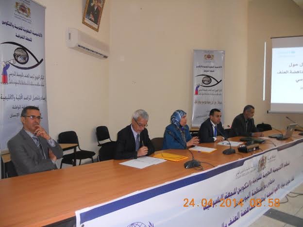 في إطار العمليات الاستراتيجية التي تنظمها الأكاديمية بشراكة مع منظمة اليونيسيف في مجال مناهضة العنف بالوسط المدرسي ، وفي سياق ما اسفرت عنه توصيات الجلسة الاختتامية الخاصة باللقاء الوطني لمناهضة العنف أيام 7 إلى 9 أكتوبر 2013، نظمت الأكاديمية الجهوية للتربية والتكوين للجهة الشرقية لقاء جهوي حول الاستراتيجية الجهوية لمناهضة العنف بالوسط المدرسي وذلك يوم الخميس 24 ابريل 2014