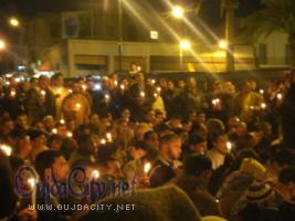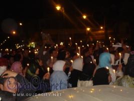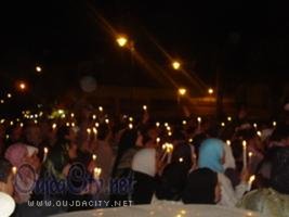 وفي نفس الوقت ناشد علماء المسلمين بالأزهر الشريف وبالسعودية وفي المجلس العلمي الأعلى بالمغرب لإصدار فتوى بخصوص واجب المسلم تجاه أخيه المسلم المحاصر. واستغرب لهذا الصمت الرهيب واعتبره خذلانا يحاسب عليه الجميع كل من موقعه منددا بتخاذل حكام مصر تجاه الحجاج الفلسطينيين. هذا التخاذل المخزي الذي جعل أحدى النساء الفلسطينيات توصي مذيع قناة الأقصى بعدم الاستغاثة بالعرب والاستغاثة بالله تعالى وحده. كما طالب المتحدث الشعب المغربي بالخروج في مسيرات والقيام بوقفات تضامنية واستعمال سلاح المقاطعة إلى أن يتم فك الحصار الجائر عن إخواننا في فلسطين. وفي ختام كلمته المؤثرة، دعا الأستاذ نهاري الحضور إلى المشاركة بكثافة في المسيرة الشعبية التي تعتزم تنظيمها مجموعة من الهيئات يوم الجمعة المقبل انطلاقا من مسجد عمر بن عبد العزيز إلى غاية باب سيدي عبد الوهاب مباشرة بعد صلاة الجمعة. وبنفس المناسبة دعا هيئات المجتمع المدني إلى الانخراط في اللجنة الدائمة لدعم الانتفاضة من وجدة والتي سيتم تأسيسها قريبا حتى تبقى القضية الفلسطينية حاضرة في قلوبنا وقلوب أبنائنا إلى أن يحرر الأقصى الشريف إن شاء الله. كما نوه بكل الجهود الشعبية والرسمية التي تصب في هذا الاتجاه وعلى رأسها لجنة القدس التي يرأسها أمير المؤمنين محمد السادس نصره الله. تميزت هذه الوقفة بحضور رموز من حركة التوحيد والإصلاح وحزب العدالة والتنمية وحزب الحركة من أجل الأمة والاتحاد الوطني للشغل بالمغرب وجمعيات نسائية وشبابية بوجدة ورفعت خلالها شموع الأمل والتفاؤل بالنصر القريب إن شاء الله.