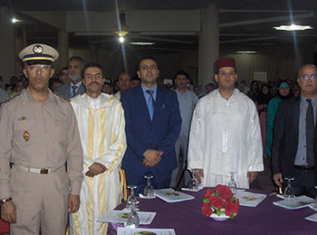 و قد استهل الحفل بآيات بينات من الذكر الحكيم تلاها التلميذ محمد يعلاوي تبرز إعجاز الله عز وجل في قوله » و من آياته…. » ، بعد ذلك وقف الجميع لأداء تحية العلم على كلمات النشيد الوطني الذي ادته المجموعة الصوتية لثانوية سيدي محمد بن عبد الله الإعدادية، و ألقى السيد عامل صاحب الجلالة على اقليم جرادة كلمة بين فيها دور المنظومة الجوهري في التنمية المحلية و الوطنية مؤكدا استعداده التام لدعم المشاريع المختلفة المتعلقة بالقطاع، و ألقى السيد النائب الإقليمي لوزارة التربية الوطنية و التكوين المهني كلمة رحب فيها بالحضور الكريم مبرزا ما حققته النيابة الإقليمية خلال الموسم الدراسي الحالي في مجالات العرض التربوي و العمل التربوي و الحكامة و مجالات الشراكة و التعاون معبرا عن اعتزازه الشديد بكافة المتدخلين لانخراطهم و التفافهم حول أوراش القطاع المتباينة انعكست في عدة محطات ابرزها اللقاءات التشاورية حول المدرسة المغربية.