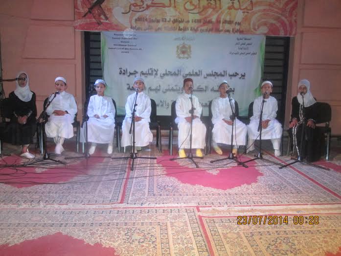 نظم المجلس العلمي المحلي لإقليم جرادة بدعم من عمالة الإقليم و بتنسيق مع  المندوبية الإقليمية للشؤون الإسلامية و النيابة الإقليمية للشباب والرياضة وبلدية جرادة ليلة القرآن في نسختها الثانية وذلك يوم الثلاثاء 24 رمضان 1435هـ الموافق لـ 22 يوليوز 2014 بالساحة المقابلة للقاعة المغطاة، إحياء لليالي رمضان المباركة و ربطا للأمة بدستورها الخالد، وتخليدا لعيد العرش المجيد بما  يرمز إليه من معاني سامية في ربط الأمة بقائدها المفدى وباني نهضتها الحديثة جلالة الملك محمد السادس نصره الله و أيده .