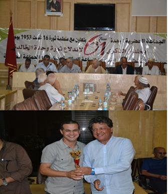 ترأس هذا الحفل البهيج السيد محمد العرابي احد ابرز رموز الحركة الوطنية الذي استحضر من خلاله الدلالات و الرموز التاريخية التي همت انتفاضة 16 غشت 1953 المجيدة و التضحيات الجسام التي قدمتها رجالات المقاومة آنذاك .
