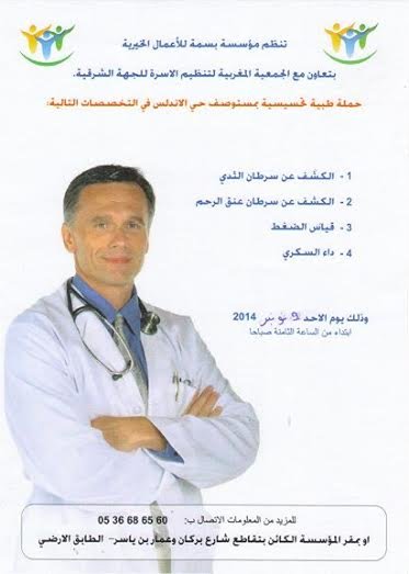 هذا النشاط الصحي المزمع انجازه سيصادف يوم الأحد 9 نونبر الجاري 2014 وذلك بمستوصف حي الأندلس ابتداء من الساعة الثامنة صباحا .