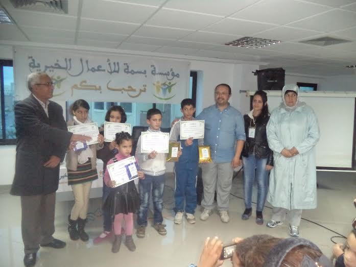 من ناحية اخرى حبذا ذكر متطوعي مؤسسة بسمة هكذا بصفة عامة لكي لا يهضم حق احد.ويرجع الفضل للاستاذ السيد المنسق بمؤسسة بسمة لان بصمته كانت لها هذه النتائج.جزاه الله خير هذا العمل والى الذين انفقوا ليفرحوا الاطفال وذلك لاعطائهم الجوائز.