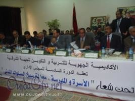 تقدم مدير الأكاديمية بعرض حصيلة السنة الماضية وبرنامج عمل السنة الدراسية المقبلة. وأهم ما جاء في التقرير أن مجموع عدد التلاميذ بالجهة بلغ 364 305 منهم 46% إناث ورغم كل التدابير المتخذة، فإن نسبة الهدر المدرسي جد مرتفعة ونسبة الأقسام المشتركة تصل إلى 42 %في نيابة فيكيك. أما المبادرات التي تميزت بها الجهة، فهي إحداث مدرسة جماعاتية ببعض الأقاليم كما ينص على ذلك الميثاق رغم أن مساهمة الجماعات المحلية لا زالت ضعيفة ويجرى التحضير لإنشاء ثانوية للامتياز بمدينة وجدة ومركزا للتكوين المستمر ومتحفا مدرسيا جهويا بتعاون مع الولاية وتأسيس إعدادية وظيفية بنيابة فيكيك. مناقشة تقرير الأكاديمية تمحورت حول وجوب تفعيل دور مجلس الأكاديمية ومأسسة عمله وتحديد الاختصاصات ووضع قانون داخلي يسمح بمحاسبة كل الأطراف. أما ممثل هيئة التفتيش فقد طالب الوزارة بإيجاد حل فوري للخصاص المهول في الأطر الناتج عن التقاعد أو الوفاة أو المغادرة الطوعية دون التعويض. انقراض المفتشين حسب تعبير المتدخل، ساهم بشكل كبير في استفحال التسيب وعدم متابعة البرامج والمناهج. وطالب