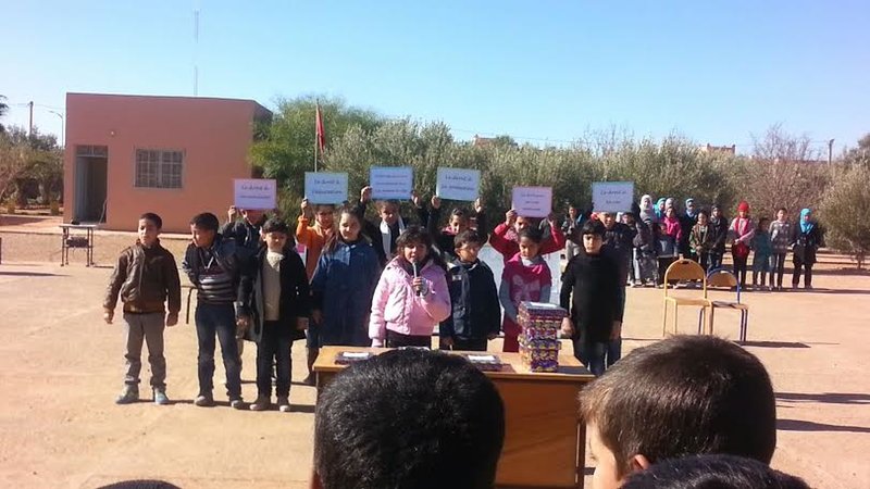 بالنسبة للشكائر الموزعة على التلاميذ كان تحتوي على فواكه (موزة وتفاحة وعصيرا وحلويات وماء معدني لكل تلميذ) وليس خضرا كما ورد في المقال سهوا. وبه وجب الاعتذار