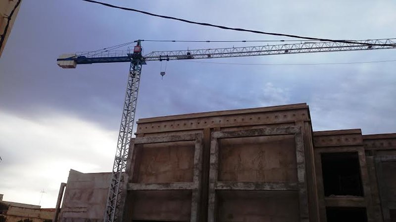 عمال ورش بناء مجاور لسوق مليلية يهددون بالانتحار من أعلى الرافعة