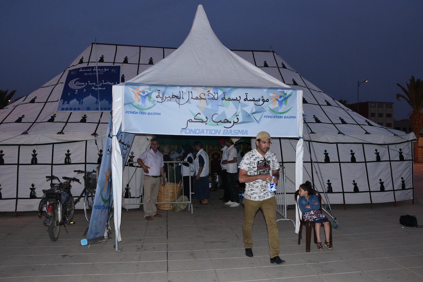 ابى رئيس مؤسسة بسمة للاعمال الخيرية بوجدة السيد عبد النبي بعيوي،مساء اليوم الجمعة 7 رمضان الجاري إلا أن يشارك أفراد الأسر المعوزة والمنحدرة من أوساط هشة فرحة الافطاربالخيمة  المنتصبة بساحة مسجد لالة خديجة بالحي المحمدي.وتأتي هذه المبادرة النبيلة تماشيا مع البرنامج الذي سطرته المؤسسة وفق أجندةزمنية محكمة  ووفق مقاربة إحسانية تضع في صلب اهتمامها المواطن الفقير،وذلك طبعا امتدادا لمحطات سابقة استفاد منها عشرات الالاف من المواطنين عبر مجموعة من الخيام خلال السنوات السابقة .وقد لقيت هذه الالتفاتة التي ستدوم طيلة أيام الشهر الفاضل استحسانا لدى الساكنة لما تنطوي عليه من معاني الخير والاحسان تماشيا مع توجيهات ديننا الحنيف.وقد شكر رئيس الجمعية كل القائمين على  هذه العملية،من لجنة منظمة ومتطوعين منظبطين ومواظبين على انجاح هذه المحطة الرمضانية الاحسانية