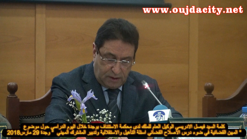 كلمة الاستاذ فيصل الادريسي الوكيل العام للملك لدى محكمة الاستئناف بوجدة خلال اليوم الدراسي VIDEO